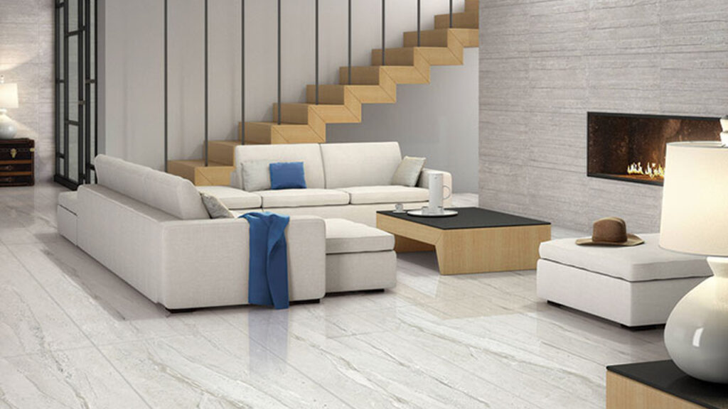 Kitchen floors handle heavy foot traffic, spills, and stains every day. Porcelain tiles are the best option here because they are extremely durable, resistant to scratches, and available in slip-resistant finishes. Matte or textured porcelain tiles reduce the risk of slipping, especially in busy cooking areas.